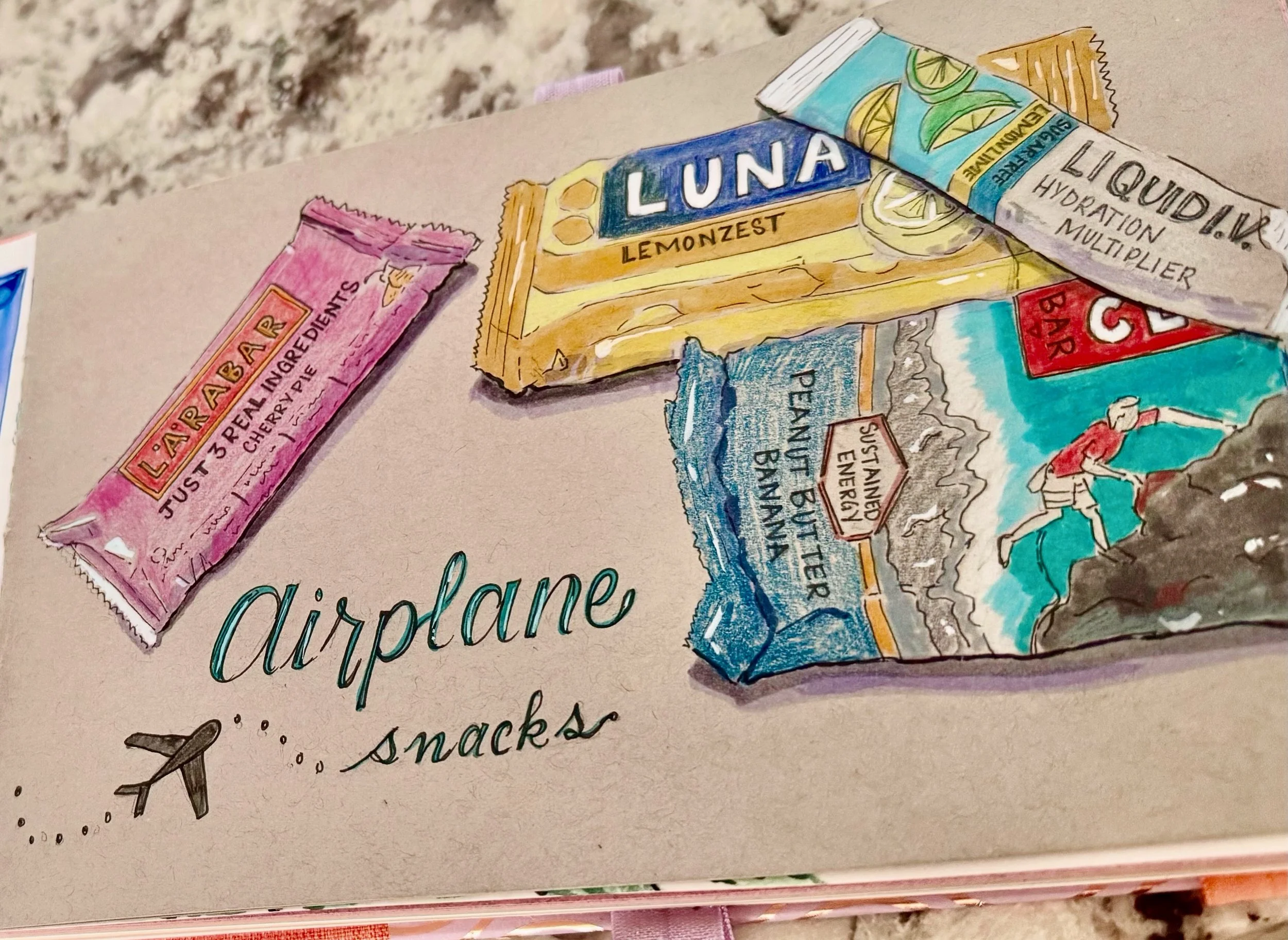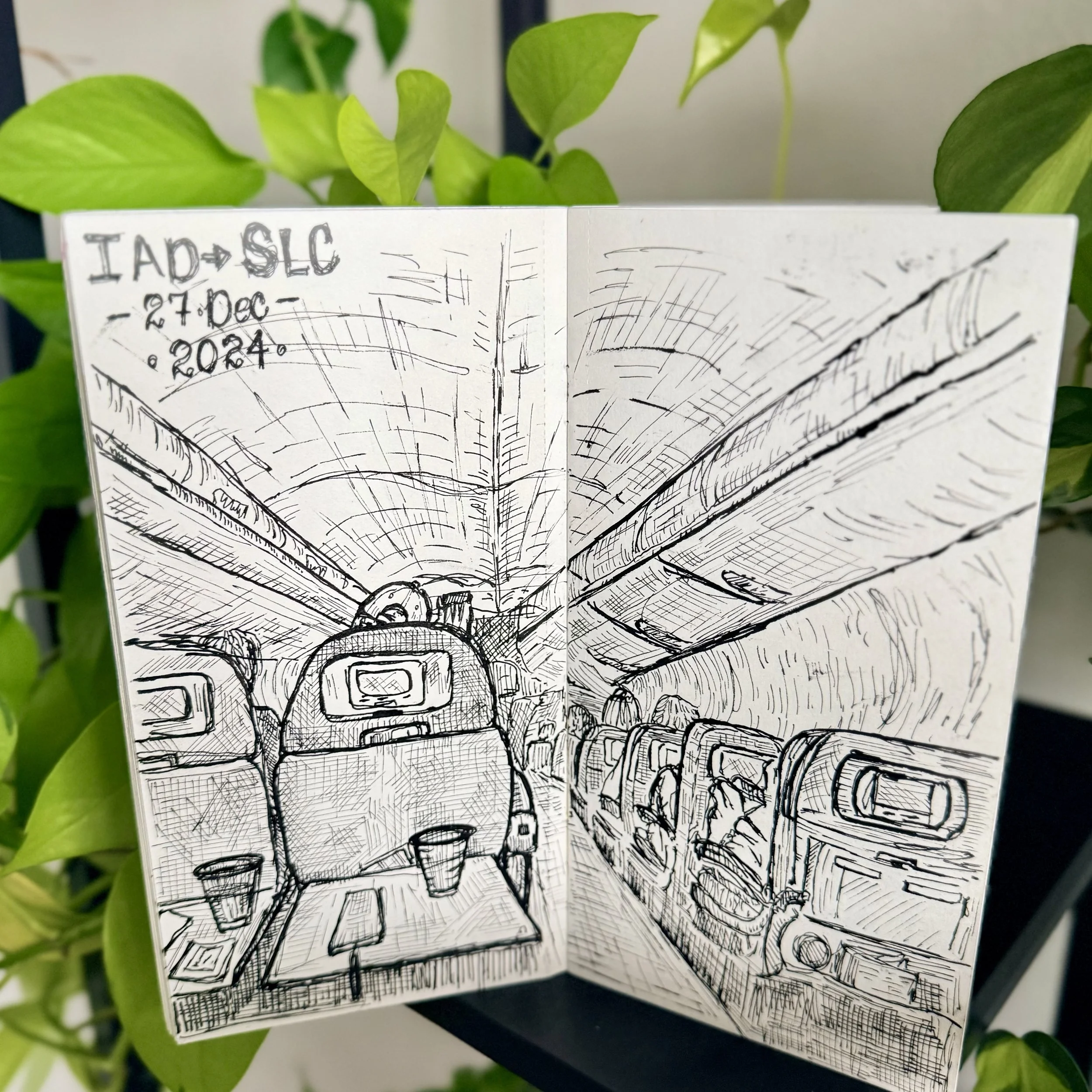 Just my sketchbook and my Sailor fude fountain pen kept me entertained for the entire flight.